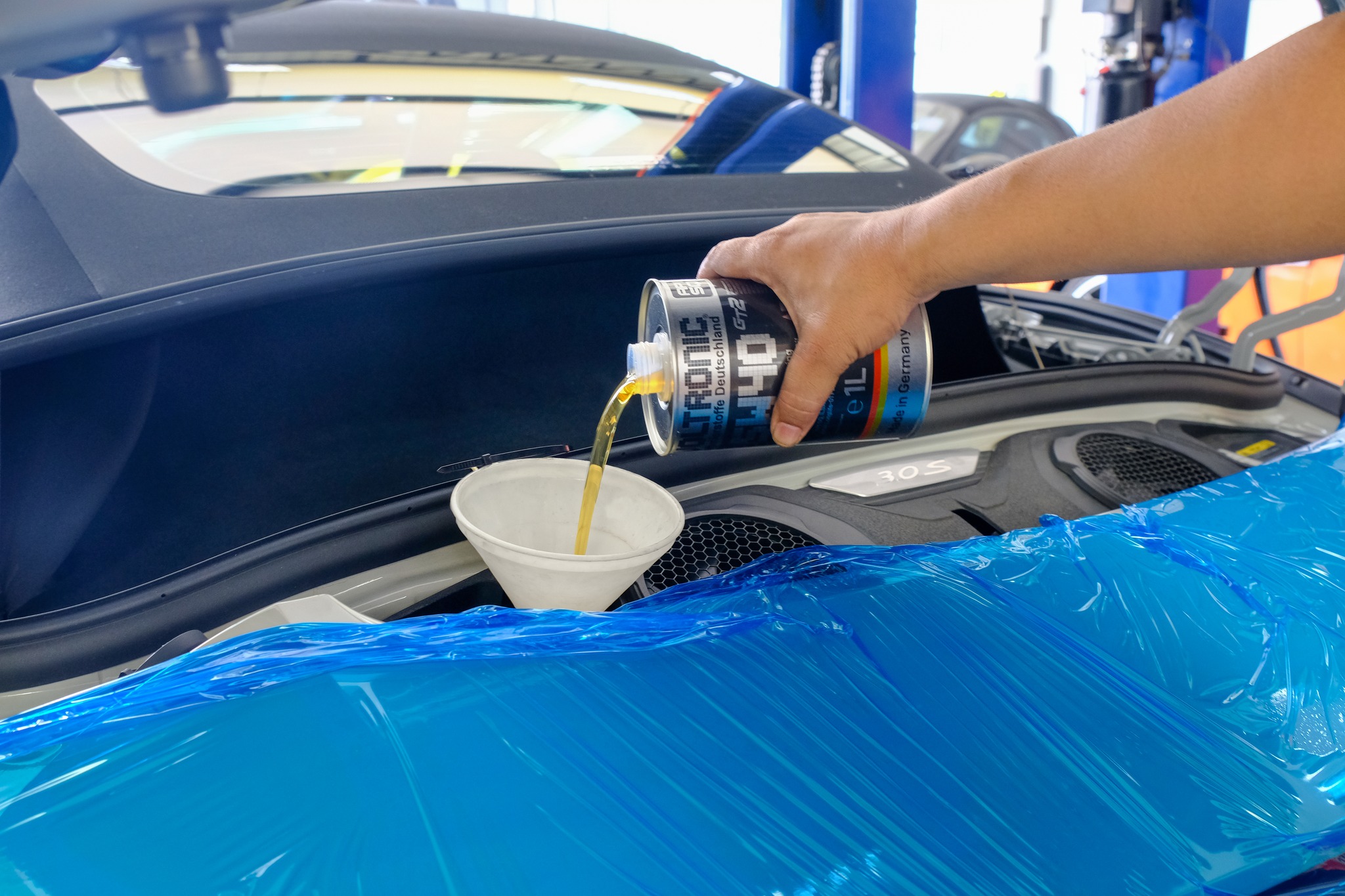 ลูกค้า Porsche 911 Carrera Cabriolet เข้ามารับบริการเช็กระยะและเปลี่ยนถ่ายน้ำมันเครื่องกับทีมช่างผู้เชี่ยวชาญที่ Top Service Auto Technic